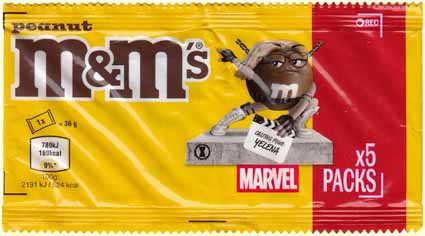 sont des mixes entre un personnage Marvel et un M&M's de couleur,