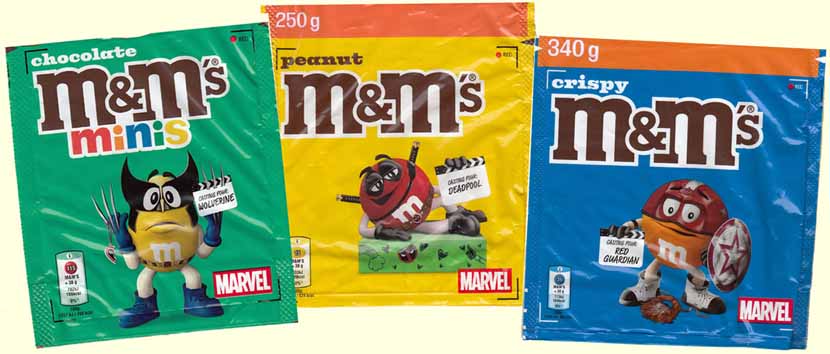 sont des mixes entre un personnage Marvel et un M&M's de couleur,